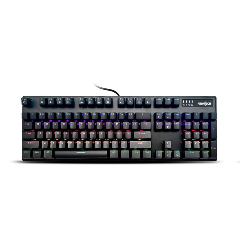 Frontech 63-Key Mechanical Gaming Wired Keyboard | Rainbow Backlit | 26 Anti-Ghosting Keys | Detachable Type-C Cable | Windows/Mac/iOS/Android Compatible | 1 Year Warranty